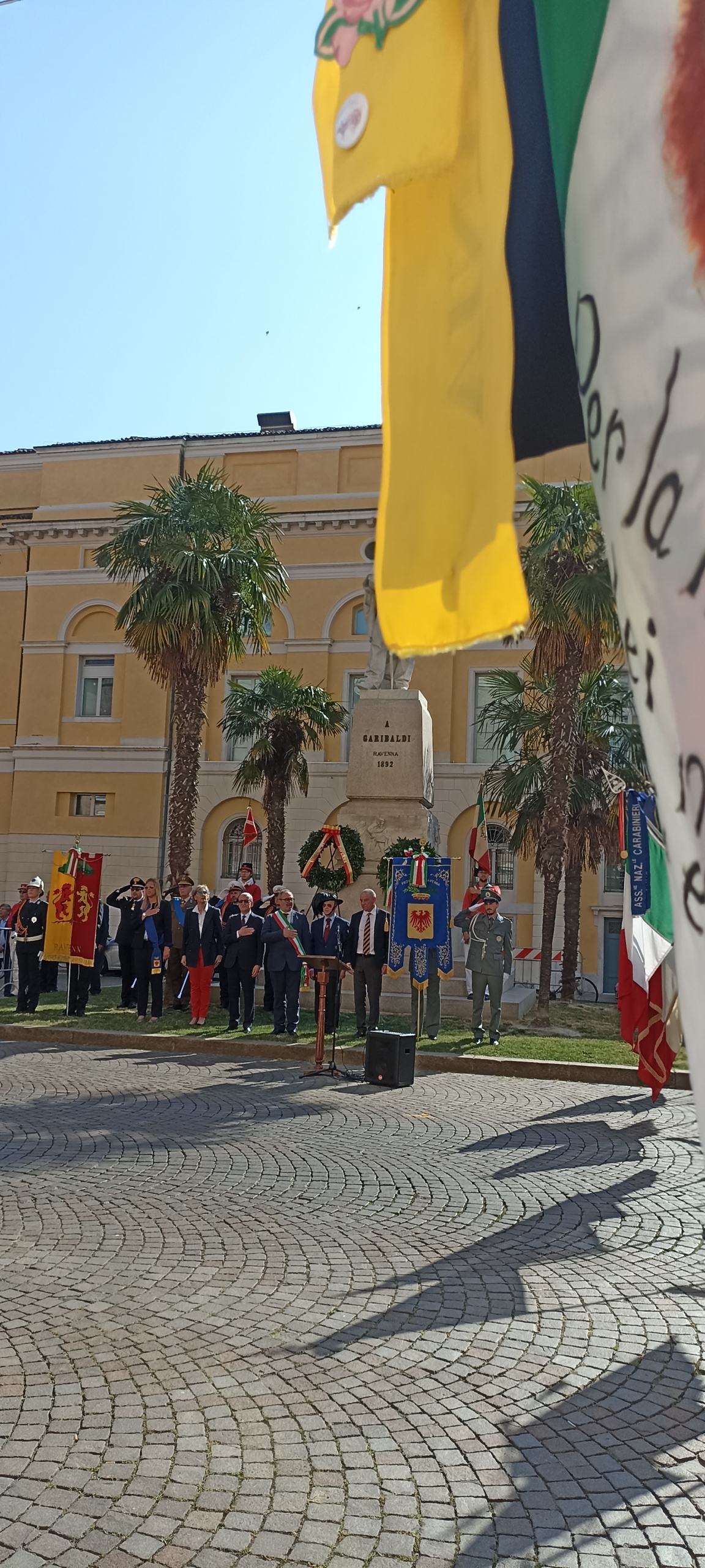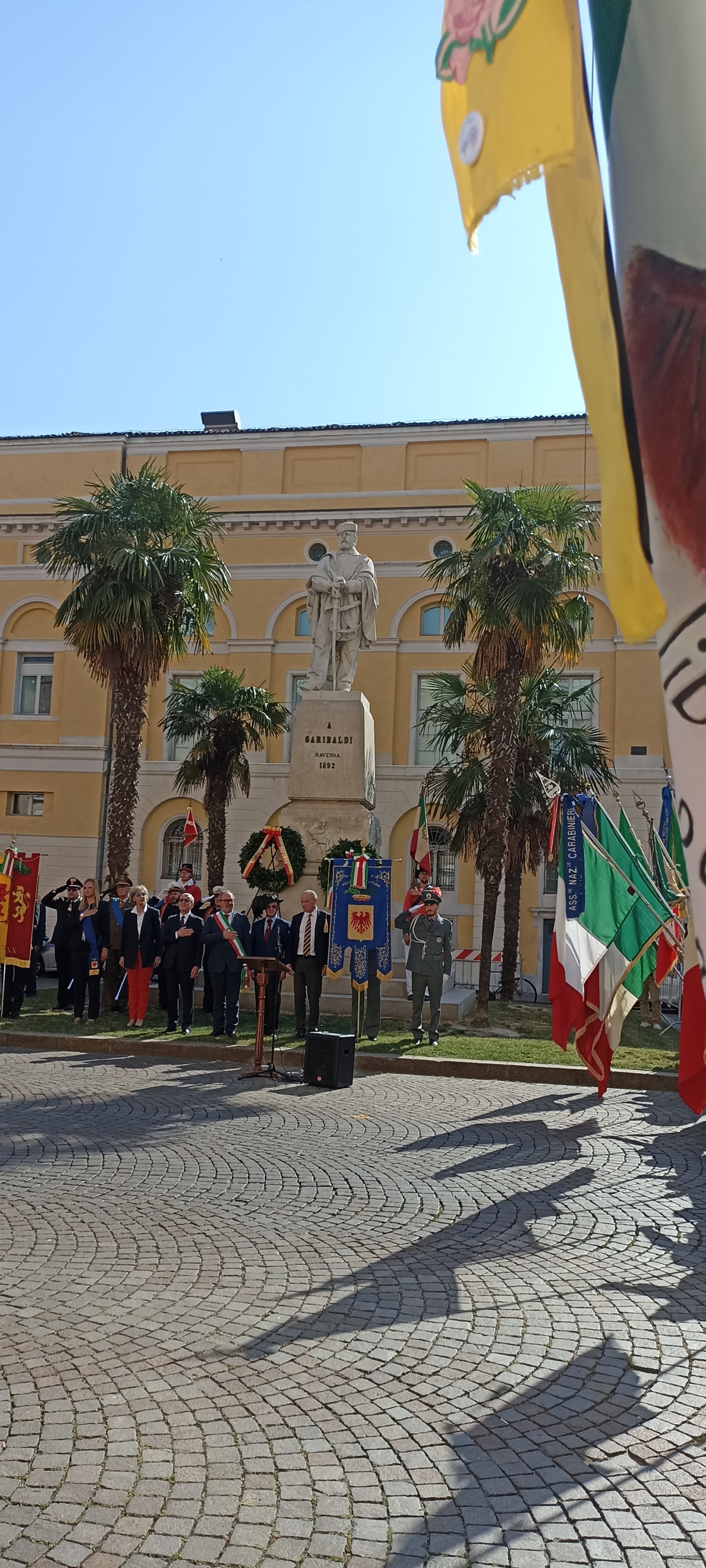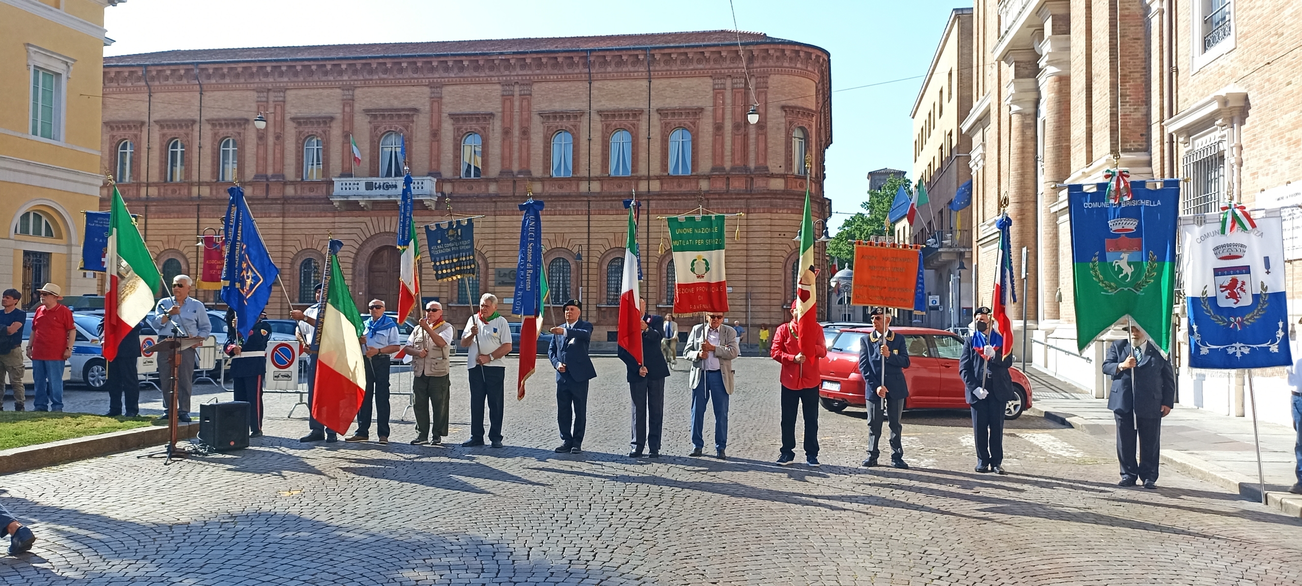 Il 2 giugno 2022, come ogni anno, a Ravenna le celebrazioni per la Repubblica sono iniziate in Piazza Garibaldi con la deposizione delle corone sotto le lapidi dei martiri del Risorgimento alla presenza dei rappresentanti delle associazioni d’arma e delle autorità.