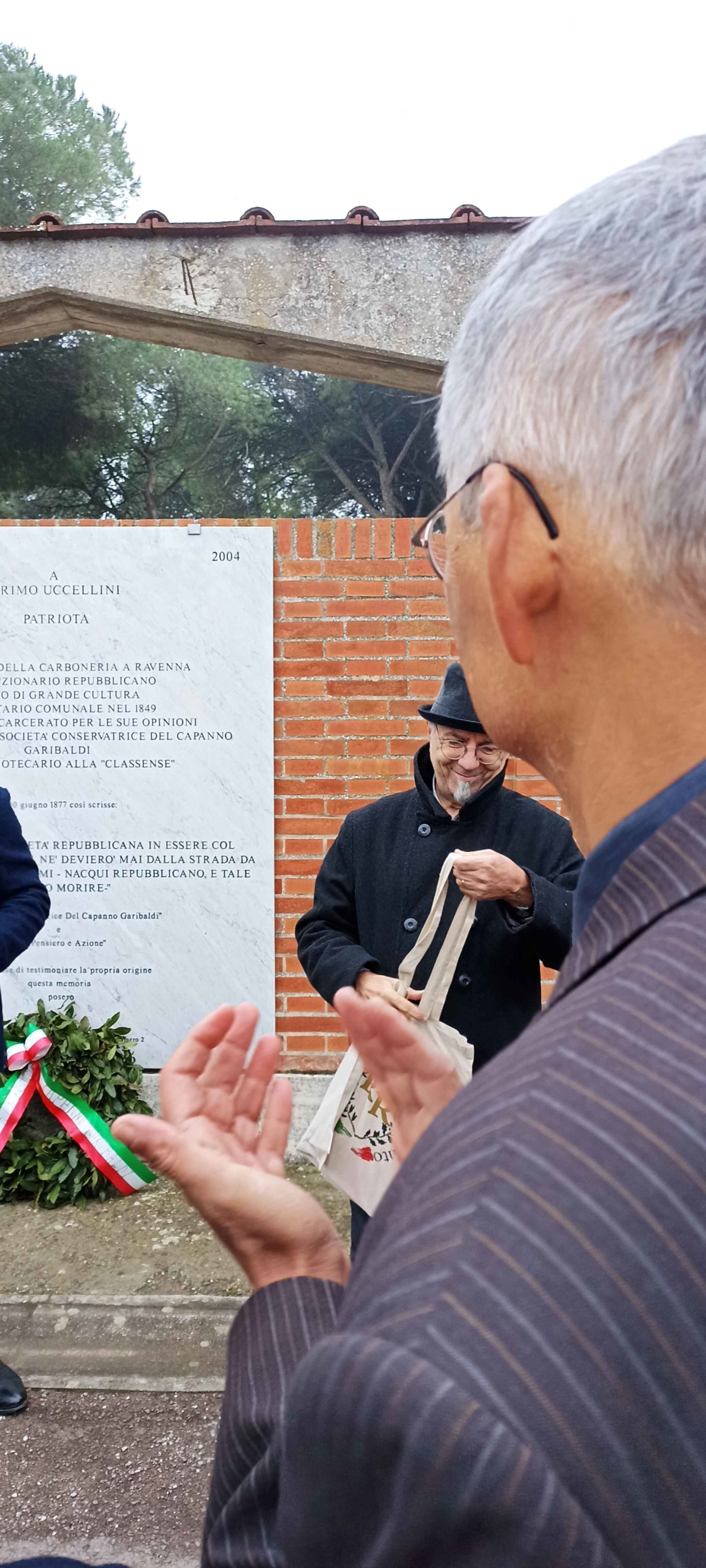 Presenti alla cerimonia il Presidente della Fondazione Ravenna Risorgimento, Eugenio Fusignani, vicesindaco di Ravenna e Franco Gàbici che si è reso disponibile a condurre una visita guidata alle tombe dei ravennati illustri esistenti all’interno del Cimitero monumentale.